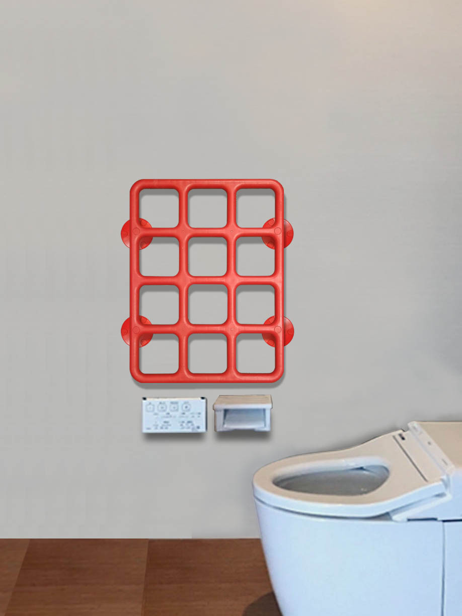 ドアの近くに何も掴まる所がないと、ドアの開閉時に転倒などの事故が起こる可能性があります。ドアあるいは引き戸の近くに設置すれば、しっかり身体を支えて、開け閉めする事が出来ます。床面からテスリックスの下端まで約1mぐらいの高さに設置します。福祉の手すり『テスリックス』は自立生活を支援します。